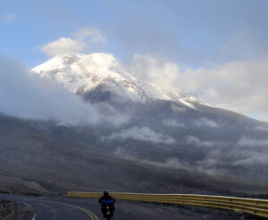 エクアドル最高峰(6,310m)を見上げながらのツーリング。