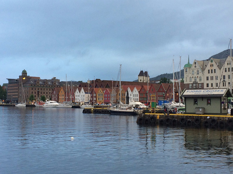 そして、ベルゲンへ到着しました。向こうは世界遺産のブリッゲンの街並。